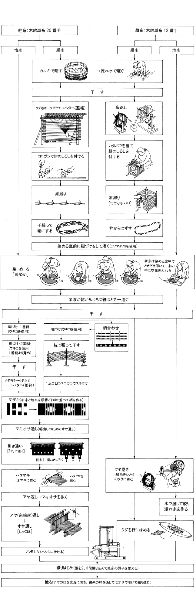 所沢飛白は、江戸時代末期の文化年間に多摩地方の現東京都東大和市や武蔵村山市において発祥し、明治維新前後に山口地方へと伝えられました。明治時代には右肩上がりに生産量を伸ばし、明治39年(1906)には年産120万反を記録して全盛期を迎えます。しかし、大正時代には漸次売り上げが下降線を辿り、昭和初期の世界恐慌時代にはその煽りを受けて大暴落に陥ります。さらに、昭和4、5年(1929、30)には所沢飛白の主産地であった勝楽寺と上山口の一部が山口貯水池(狭山湖)の湖底に沈むこととなり、移転を余儀なくされた機屋の多くは、これをきっかけに生産に見切りをつけました。そして、昭和10年代前期には、かつて大いに人気を博し、全国に名を知られた所沢飛白の製造は、その歴史に幕を閉じることとなったのです。